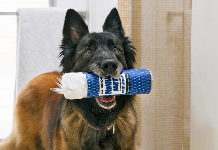 Unleash the glamour for your pup with P.L.A.Y.'s 80s Classics Pawqua Net toy! This hairspray bottle-inspired toy features a giggle stick for added amusement, encased in a crinkle material outer body that adds an extra layer of fun. Watch your furry friend strut their stuff with this chic toy, where every play session is a canine runway!